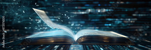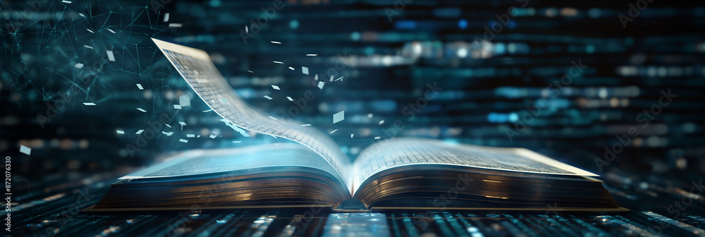 Wall mural open book transforming into digital data stream - Wall murals Wall mural open book transforming into digital data stream - Wall murals