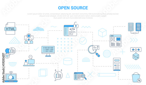 Wall mural open source concept with icon set template banner with modern blue color style - Wall murals Wall mural open source concept with icon set template banner with modern blue color style - Wall murals