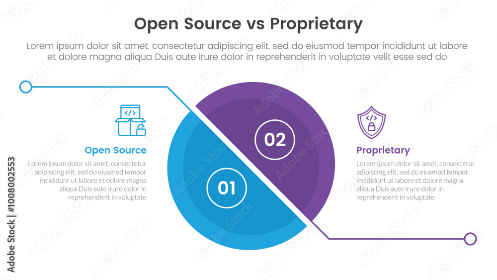 The watermark will not be included on Wall mural.: Open source vs proprietary software comparison concept for infographic template banner with big slic