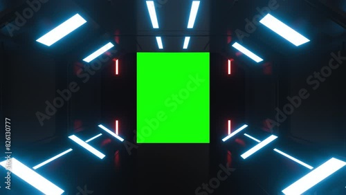 The watermark will not be included on Wall mural.: Opening gate or door in dark futuristic tunnel spaceship or science laboratory corridor - sci-fi con