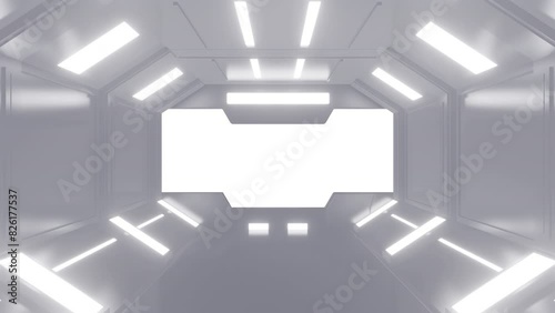 The watermark will not be included on Wall mural.: Opening gate or door in white futuristic tunnel spaceship or science laboratory corridor - sci-fi co