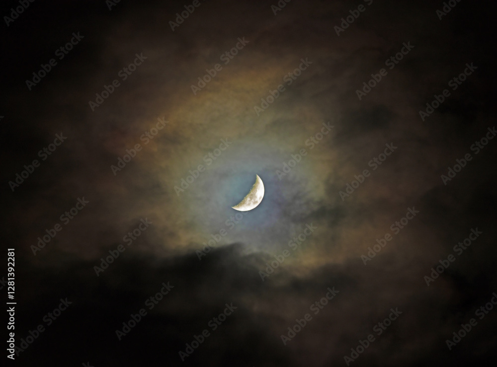 The watermark will not be included on Wall mural.: Opening in the clouds with the moon shining through