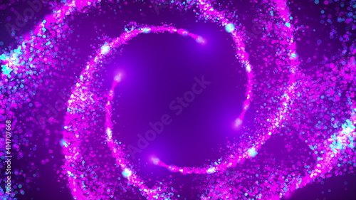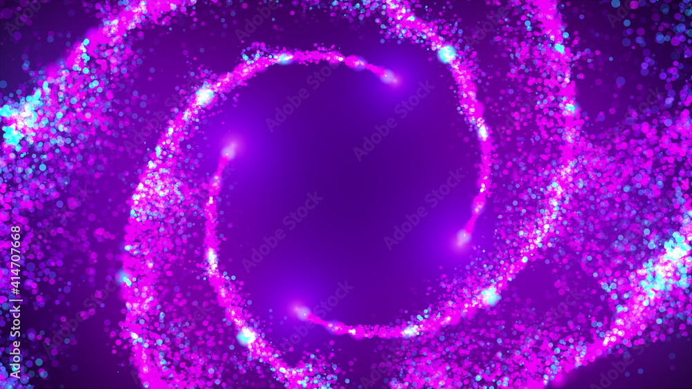 Wall mural opening intro flash light, lens flare, rotation particles. 3d rendering