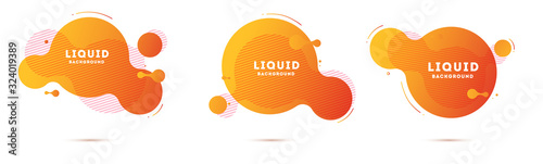 Wall mural orange, pink, blue geometric abstract elements set. dynamical colored forms and lines. flowing shape