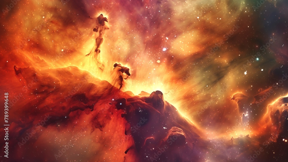 Wall mural orange deep space galaxy nebula. cinematic celestial background depicting astrology and space explor - Wall murals Wall mural orange deep space galaxy nebula. cinematic celestial background depicting astrology and space explor - Wall murals
