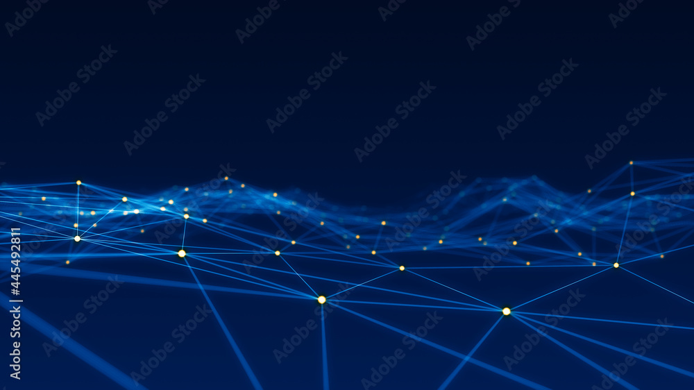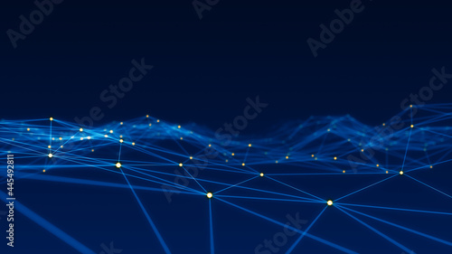 Wall mural orange dot and line connection with polygonal technology abstract background