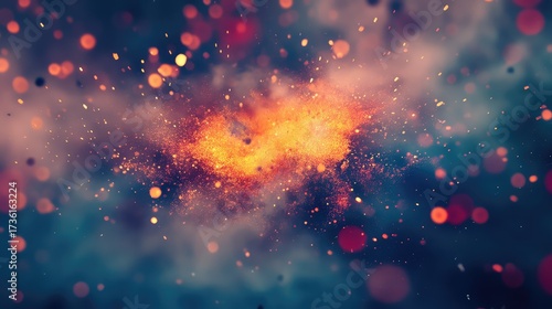 Orange particles exploding with glowing bokeh effectsWall mural