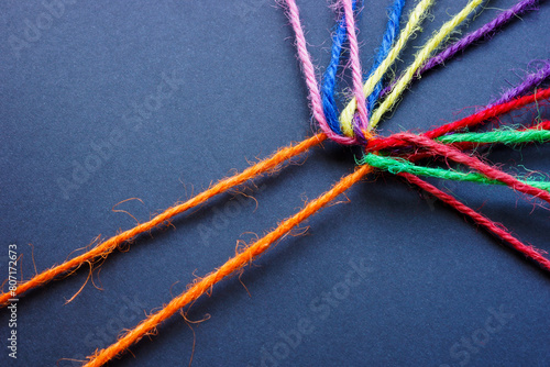 Wall mural orange thread connecting colored threads. teamwork and diversity. - Wall murals Wall mural orange thread connecting colored threads. teamwork and diversity. - Wall murals