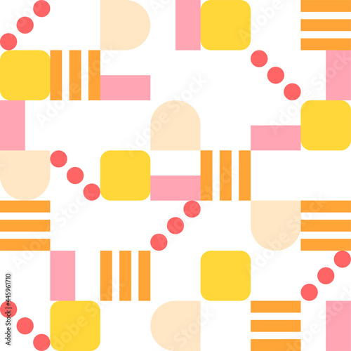 Wall mural : Orange-tone lines, dots, and square pieces of figure form a pattern - simple pattern design template -