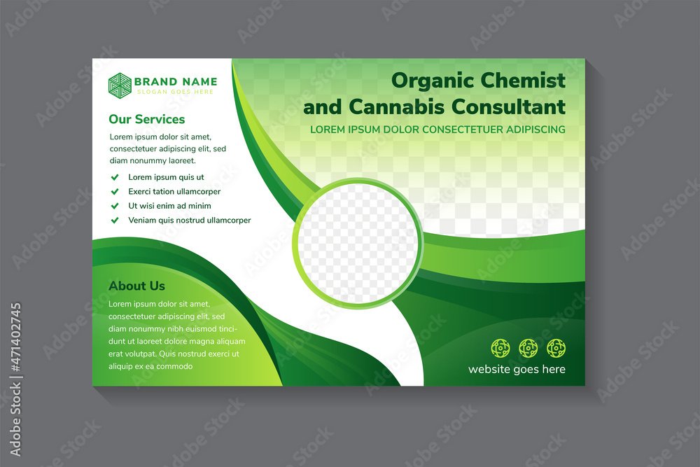 The watermark will not be included on Wall mural.: Organic chemist flyer design - abstract geometric banner template for universal business promotion - h