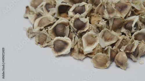 The watermark will not be included on Wall mural.: Organic moringa oleifera seeds dried from moringa tree on white background