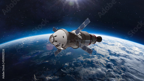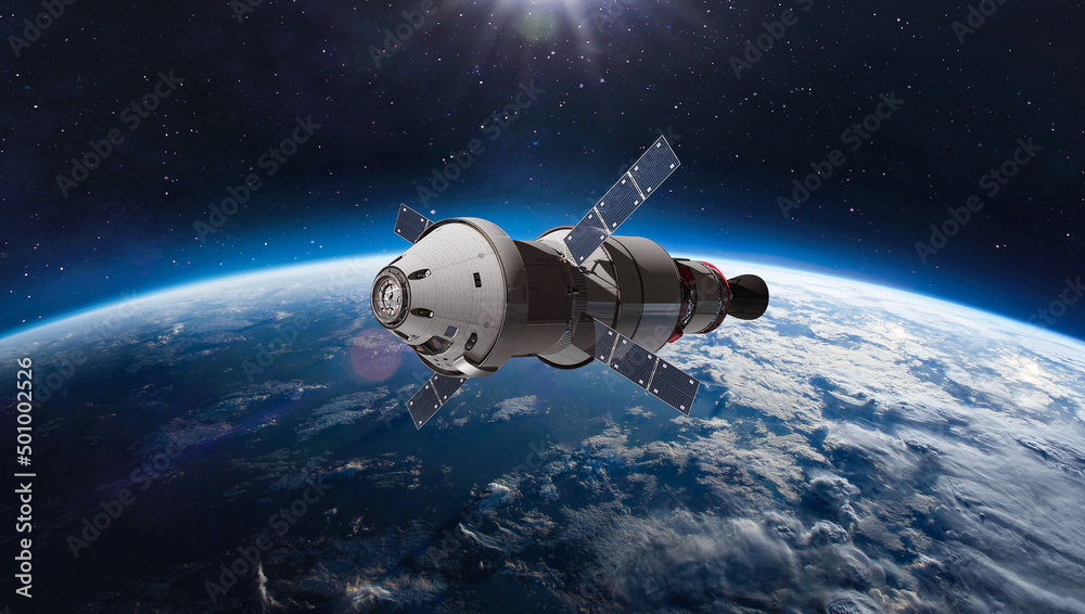 Wall mural orion spacecraft flight in space. spaceship on orbit of earth. sci-fi wallpaper. artemis space progr - Wall murals Wall mural orion spacecraft flight in space. spaceship on orbit of earth. sci-fi wallpaper. artemis space progr - Wall murals