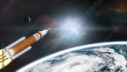 Wall mural orion spacecraft take off mission from earth planet. artemis space program. elements of this image f - Wall murals Wall mural orion spacecraft take off mission from earth planet. artemis space program. elements of this image f - Wall murals
