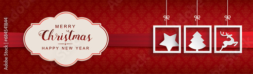 The watermark will not be included on Wall mural.: Ornaments 3 frames merry christmas classic emblem red header
