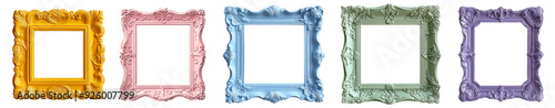 Wall mural : Ornate picture frames in bright colors with intricate details vintage style transparent background