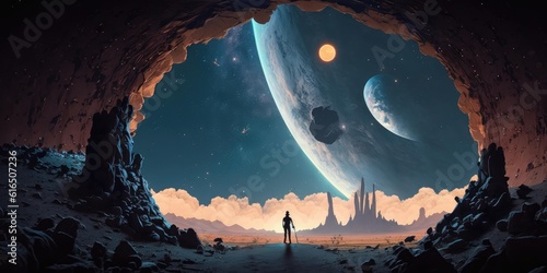 Wall mural outer planet landscape with from sci fi novel. superlative generative ai image. - Wall murals Wall mural outer planet landscape with from sci fi novel. superlative generative ai image. - Wall murals
