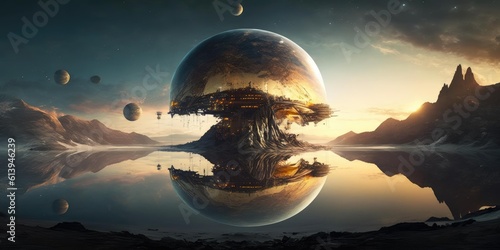 Outer planet landscape with from sci fi novel - superlative generative ai image - Wall mural