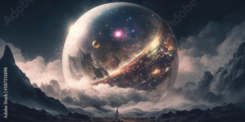 Outer planet landscape with from sci fi novel - superlative generative ai image - Wall mural