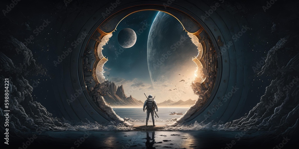 Wall mural : Outer planet landscape with from sci fi novel - superlative generative ai image - generative ai