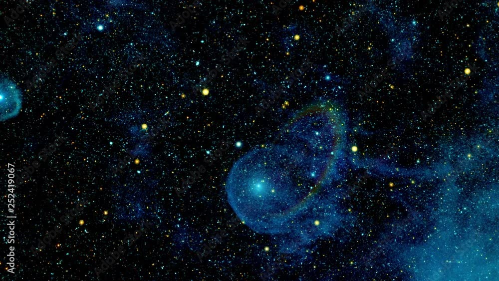 Outer space large map with galaxies and rotating stars field, large rainbow flare light animation, cWall mural