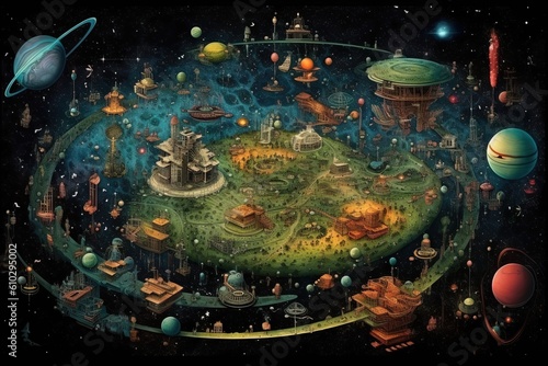 Wall mural outer space map made out of alien stuff illustration generative ai