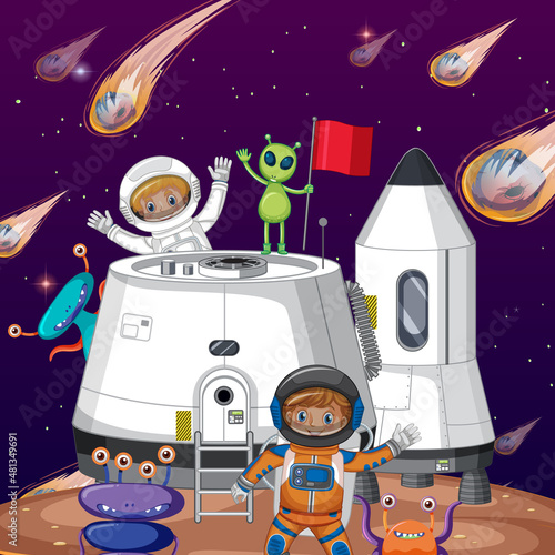 Wall mural outer space planet with astronauts and comets - Wall murals Wall mural outer space planet with astronauts and comets - Wall murals
