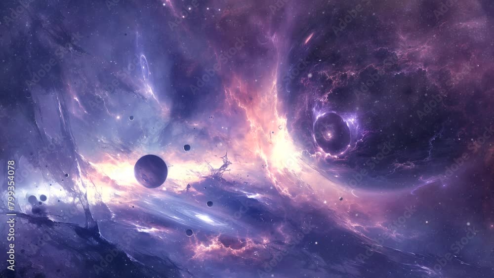 The watermark will not be included on Wall mural.: Outer space planets and luminous stars - looping time-lapse video animated background