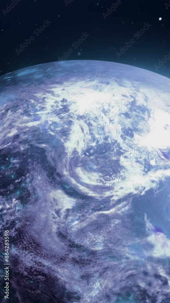 The watermark will not be included on Wall mural.: Outer space with a view of the earth - motion - illuminated in blue and yellow with a view of our pl