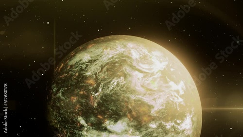 Wall mural outer space with a view of the earth . motion . illuminated in blue and yellow with a view of our pl