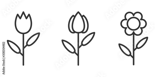 The watermark will not be included on Wall mural.: Outline flower icons set - vector illustration