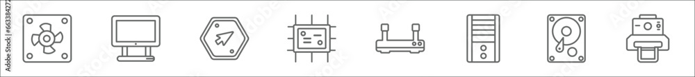 Outline set of hardware line icons - linear vector icons such as computer fan, laptop screen, mouse pWall mural