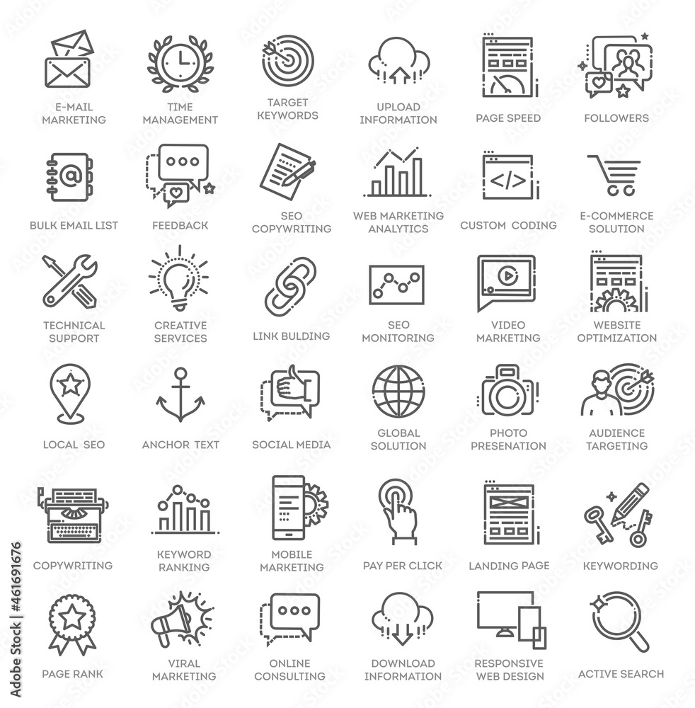 Wall mural outline web icons set - search engine optimization. thin line web icon collection.