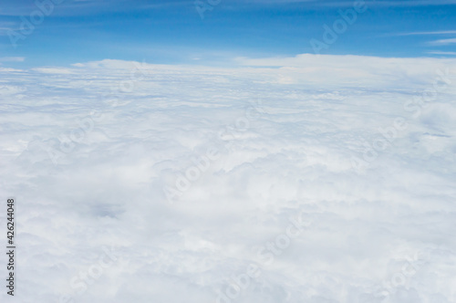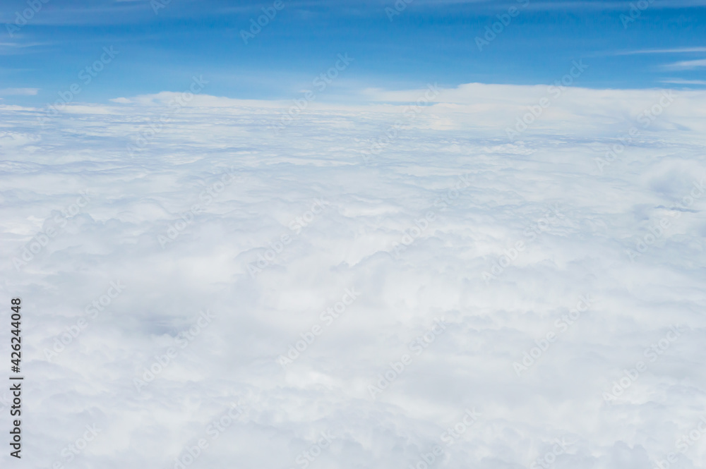 Wall mural over the clouds,blue sky with tiny clouds background beautiful natural view from airplane window abo