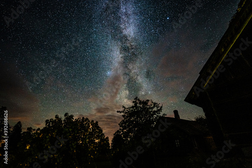 The watermark will not be included on Wall mural.: Overhead milky way with stars in clear summer night - country side -