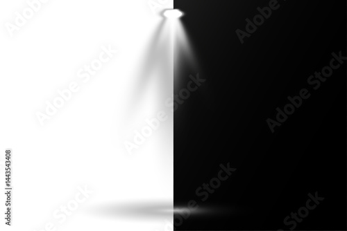 The watermark will not be included on Wall mural.: Overlay effects simulate professional studio illumination - row of spotlights casts intense glow on d