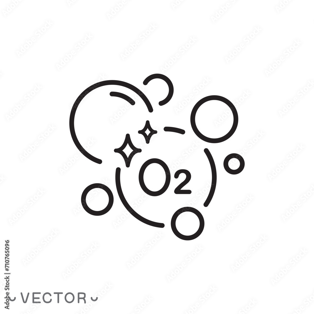 Wall mural oxygen molecule icon, o2 model, clean air concept, thin line symbol isolated on white background, ed