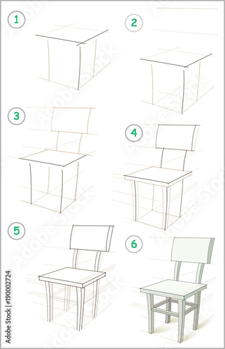 Wall mural page shows how to learn step by step to draw a chair. developing children skills for drawing and col - Wall murals Wall mural page shows how to learn step by step to draw a chair. developing children skills for drawing and col - Wall murals