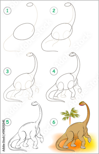 Wall mural : Page shows how to learn step by step to draw a cute dinosaur - developing children skills for drawing