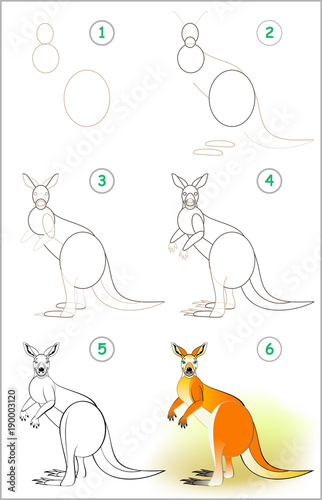 Wall mural page shows how to learn step by step to draw a cute kangaroo. developing children skills for drawing - Wall murals Wall mural page shows how to learn step by step to draw a cute kangaroo. developing children skills for drawing - Wall murals