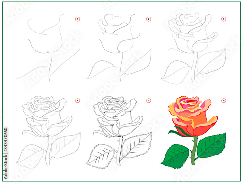 Wall mural page shows how to learn to draw step by step beautiful rose flower. developing children skills for d - Wall murals Wall mural page shows how to learn to draw step by step beautiful rose flower. developing children skills for d - Wall murals
