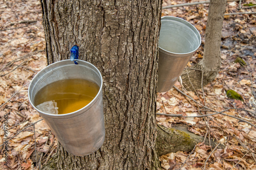 The watermark will not be included on Wall mural.: Pail used to collect sap of maple trees to produce maple syrup i