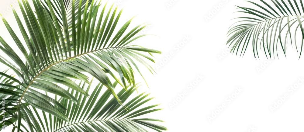 Wall mural : Palm fronds arranged in a corner with copy space image on a white backdrop