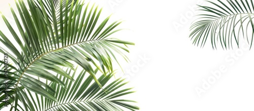 The watermark will not be included on Wall mural.: Palm fronds arranged in a corner with copy space image on a white backdrop