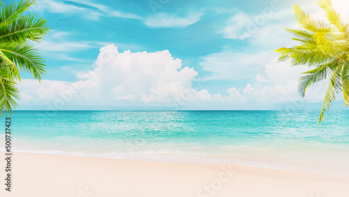 Palm tree on tropical beach with blue sky and white clouds abstract background - copy space of summerWall mural