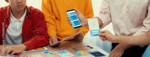 The watermark will not be included on Wall mural.: Panorama banner of startup ux developer or company employee design user interface or ui prototype fo