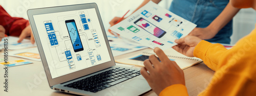 The watermark will not be included on Wall mural.: Panorama banner of startup ux developer or company employee design user interface or ui prototype fo