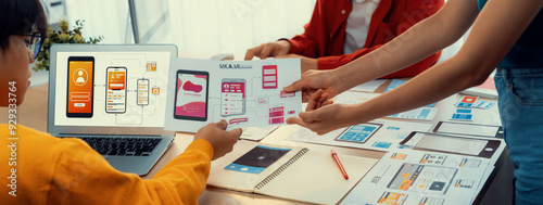 The watermark will not be included on Wall mural.: Panorama banner of startup ux developer or company employee design user interface or ui prototype fo