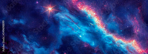 Wall mural panorama colorful background with nebula galaxy space 06 generative ai illustration - Wall murals Wall mural panorama colorful background with nebula galaxy space 06 generative ai illustration - Wall murals
