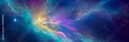 Wall mural panorama colorful background with nebula galaxy space 07 generative ai illustration - Wall murals Wall mural panorama colorful background with nebula galaxy space 07 generative ai illustration - Wall murals