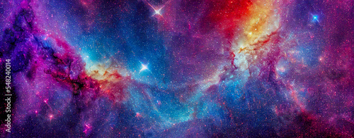 The watermark will not be included on Wall mural.: Panorama colorful background with nebula galaxy space generative ai illustration